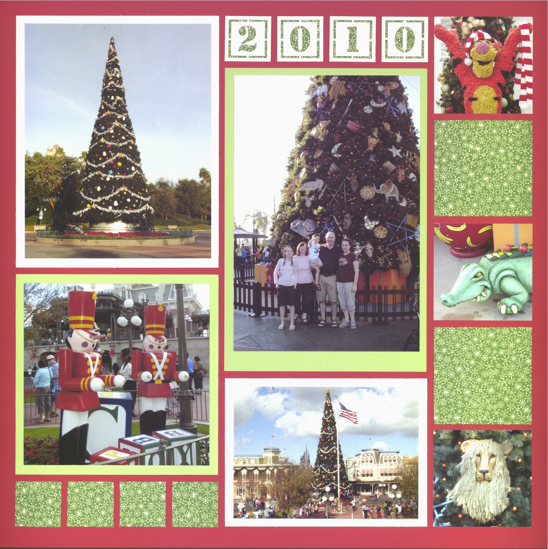 On this page, we filled the mosaic design spots with Poinsettias. We love using floral shots since they make a great texture and they are so pretty! If you don’t have any photos – grab some holiday patterned paper to add a little pizazz.