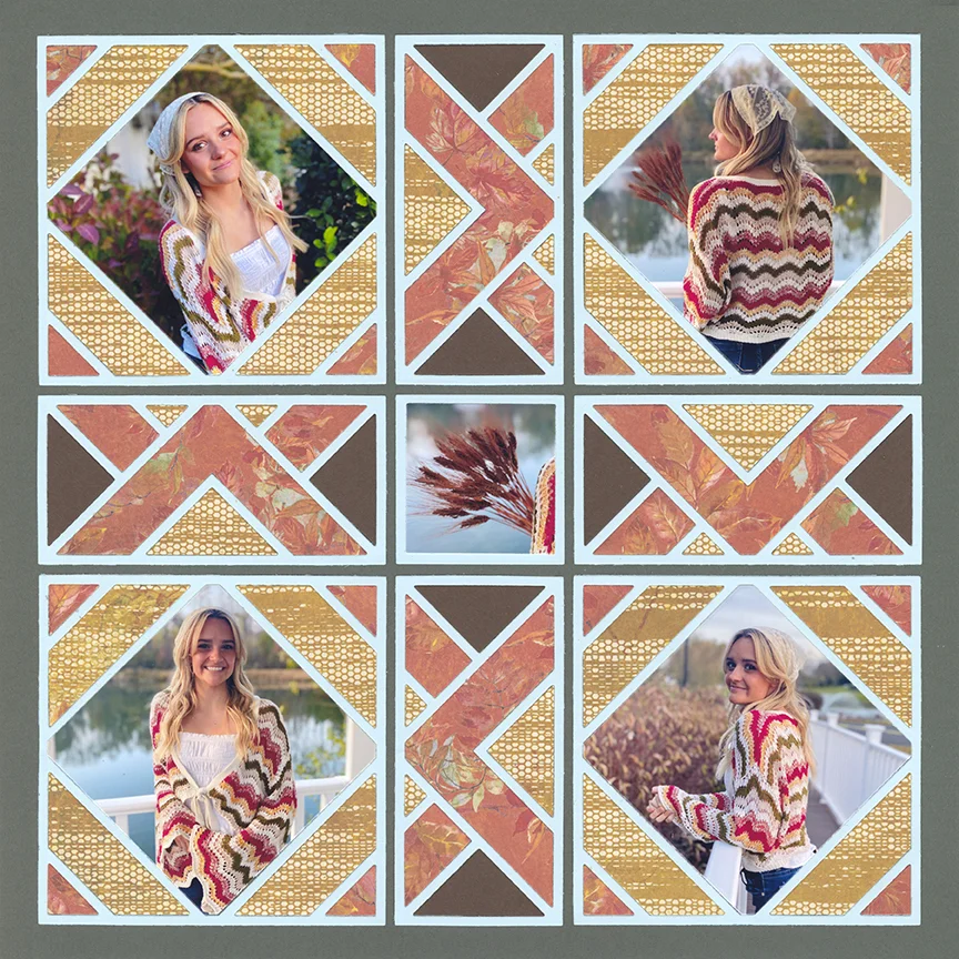 For beginners, the dies cut your photos to the perfect size every time without worrying about complicated measurements and the grid provides structure, so you can confidently arrange your photos and embellishments.