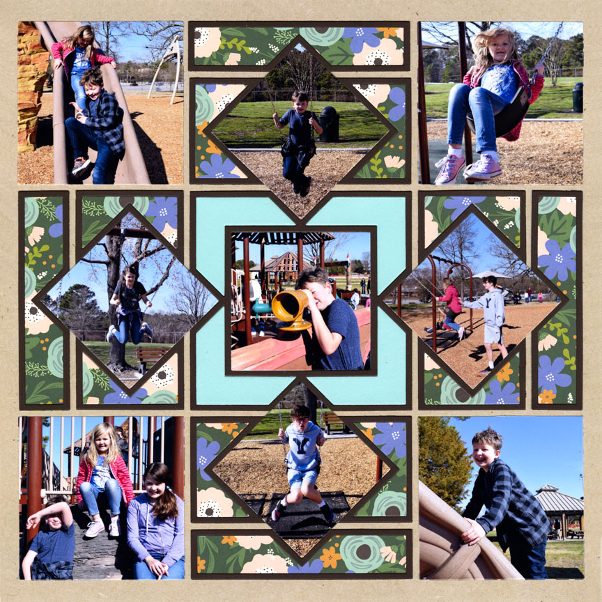 The Dynamic Set "connects" with diamonds. Then, you can cut a photo into a diamond shape and lay over the top. It creates a layout that is truly unique from all of the others.