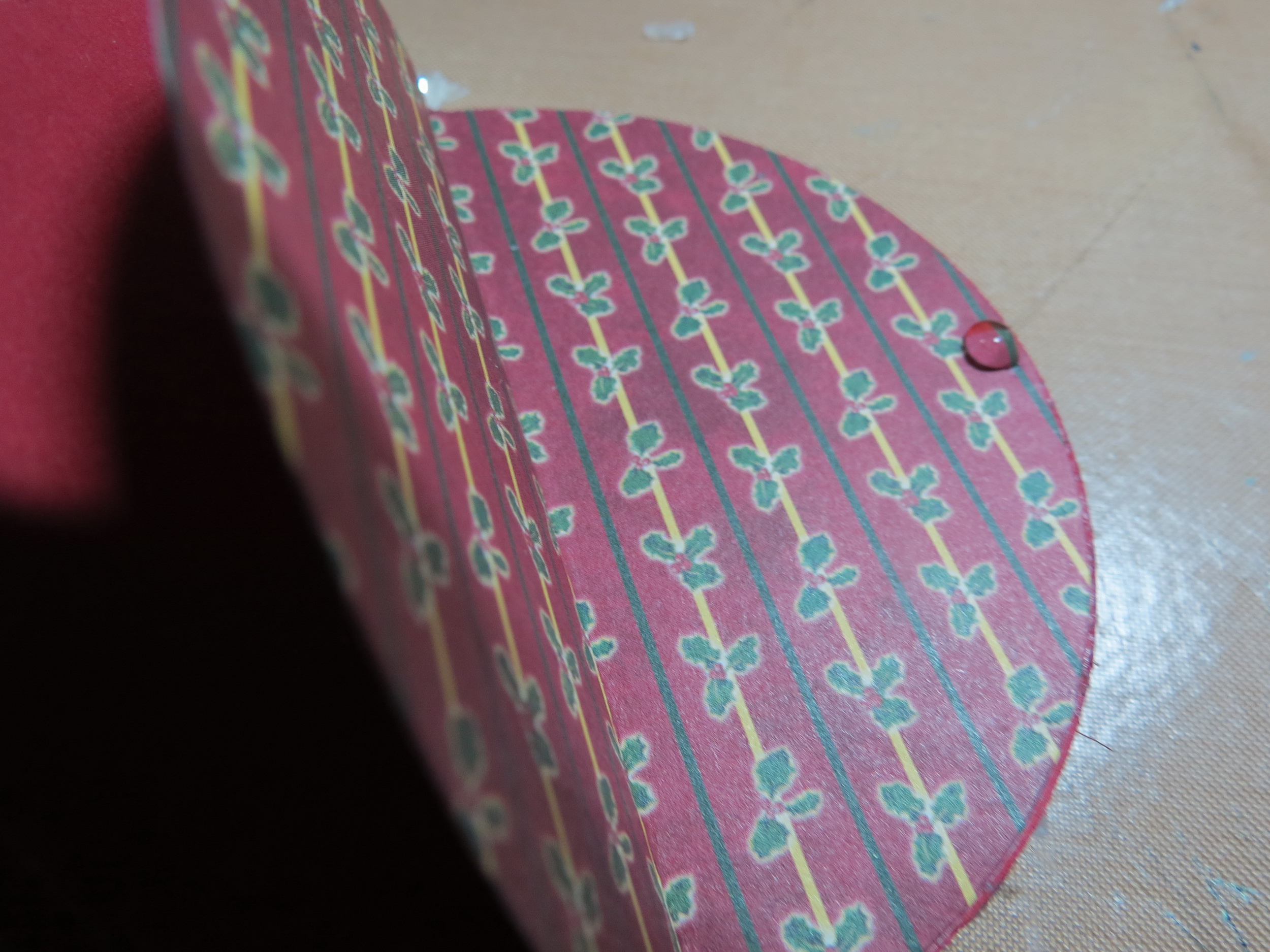 To finish the ornament off I added glue to the messy spots on top and bottom and at the glued edge and then sprinkled glitter to add a bit of sparkle