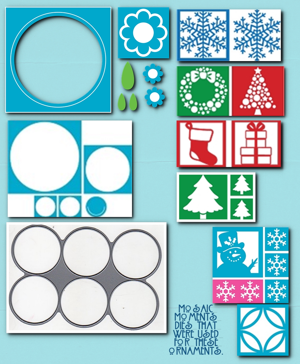 I’m featuring some of the various Mosaic Moments Christmas dies that can be used in your Christmas layouts but I’m going to do something outside of the box to take the dies off the grid! It’s time to dress things up with a few ornaments!