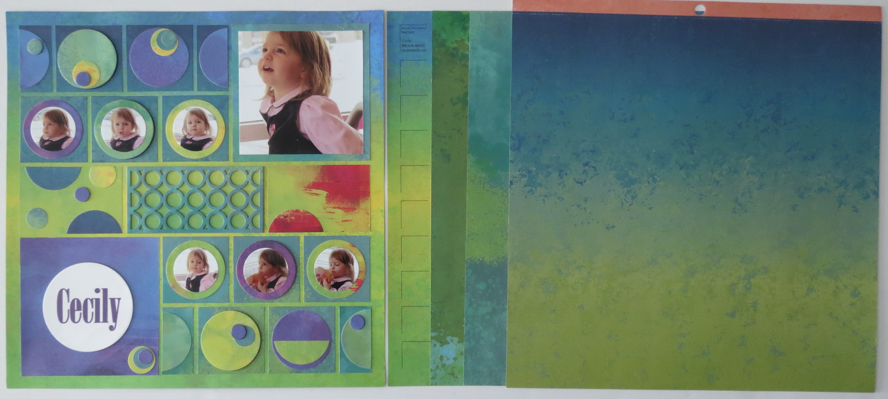 The only photo I have not cut into or placed in a circle is the focal photo of Cecily. I like having one space that stands out as different, and I think it’s the right choice.