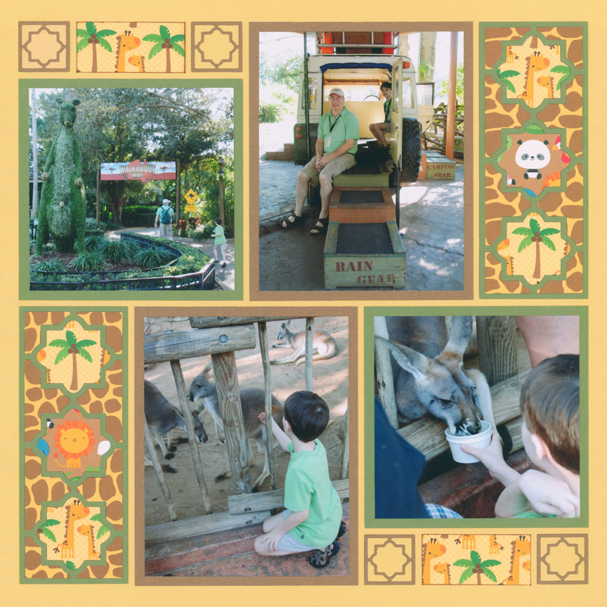 This combination is wonderful for layouts of the zoo. Brown and green are generally associated with nature, and adding the yellow brightens up these common colors.