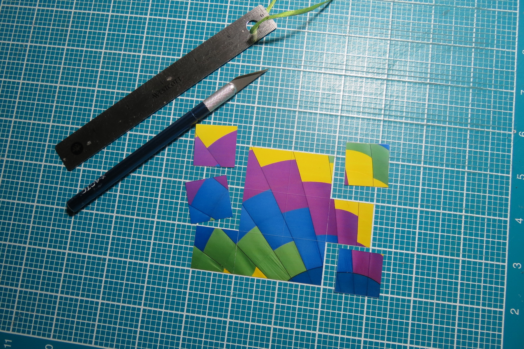 To fill the two sections of 1” squares I took one photo with the balloon pattern and hand-cut the pieces to fill them in.