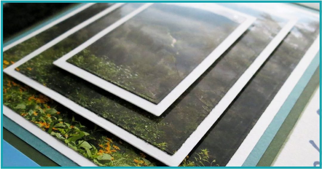3. Then using the layering die from the Basic Set C I trimmed each of the photos to the same size by layering all three together. While it didn’t cut all the way through I did get an impression and then cut each individually with the die.