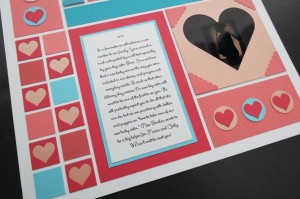 Do you have a story you want to tell about someone special? Planning something for someone you love? You may enjoy adapting this layout with colors to fit the occasion and Tell Your Story with a little heart!