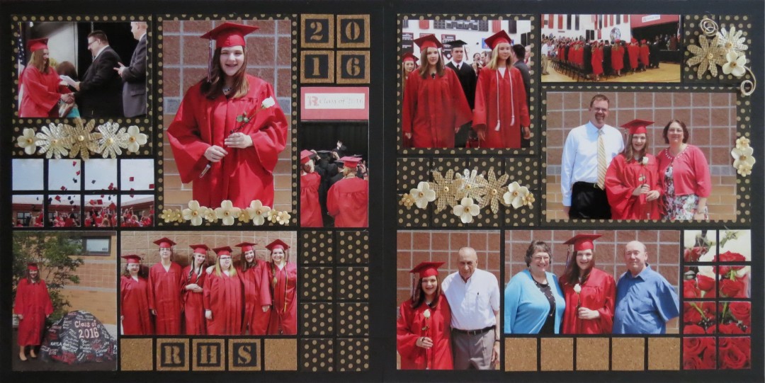 The striking contrast between the black, kraft and cream page was a nice neutral backdrop to let the school colors, red and black, bring a punch of color to the page.
