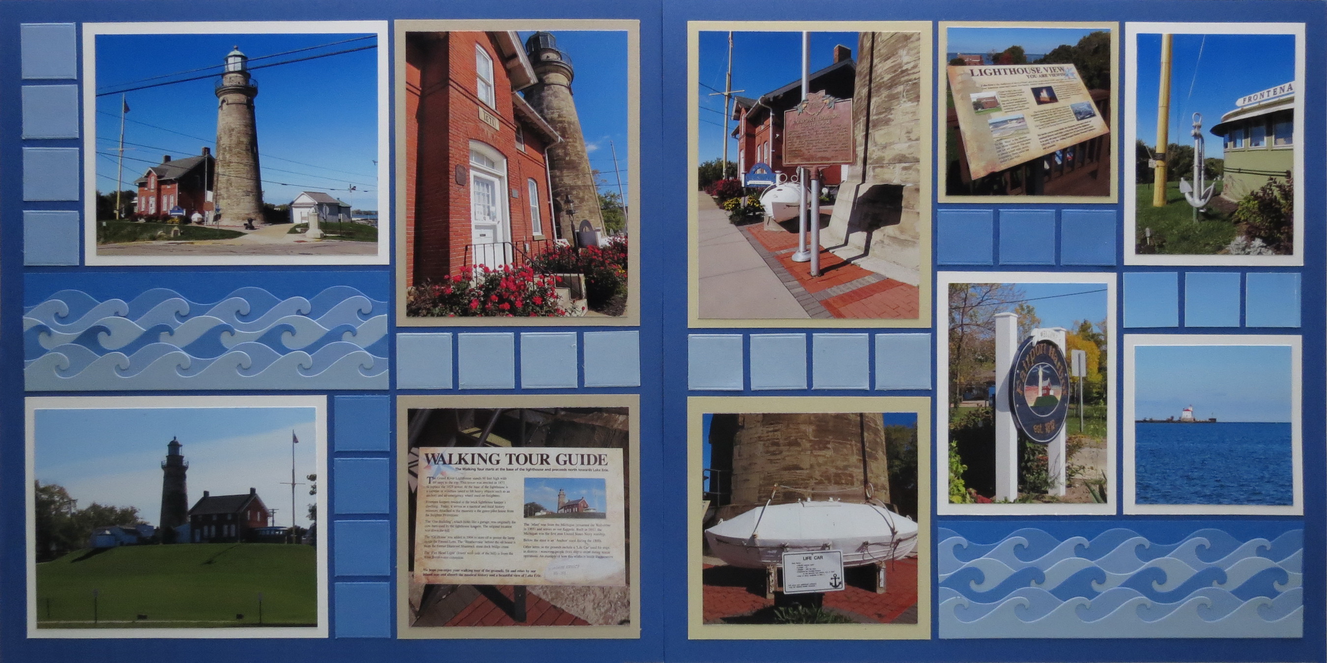 I took a day trip along the Lake Erie coast in NE Ohio and stopped at several lighthouses in Ashtabula County and had to decide whether to include them all or pick one. I decided I had enough interesting photos of the Grand River Lighthouse to fill a double page spread.